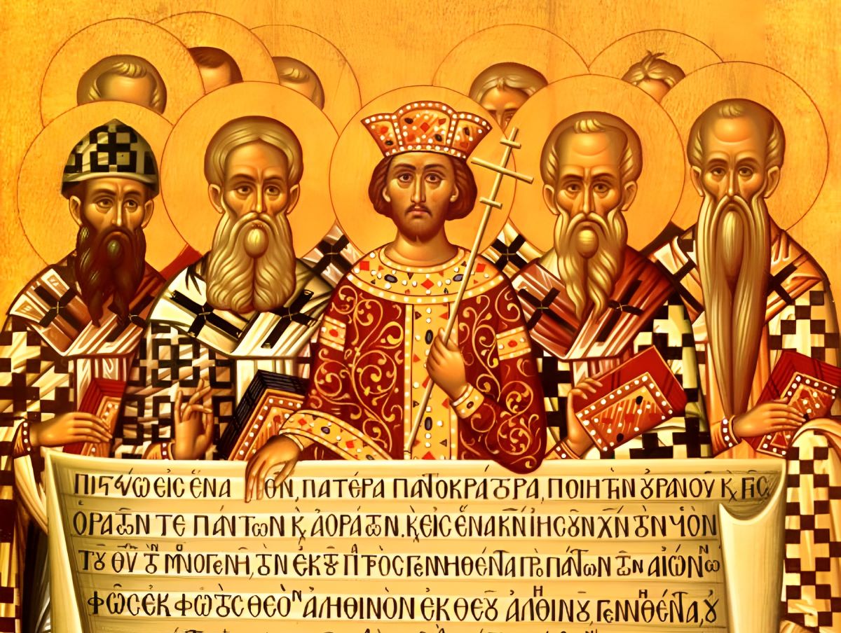 Tenutosi nel 325, appena 12 anni dopo l’editto di Costantino, fu il primo concilio ecumenico cristiano e fu convocato e presieduto dallo stesso imperatore Costantino. Intento principale dell’assise, svoltasi appunto nella città di Nicea, in Asia minore, era ristabilire la pace religiosa e raggiungere l’unità dogmatica, minata da varie dispute, in particolare sull’arianesimo. Non va nascosto un intento politico, dal momento in cui i forti contrasti tra i cristiani indebolivano anche la società e, con essa, lo Stato imperiale romano.