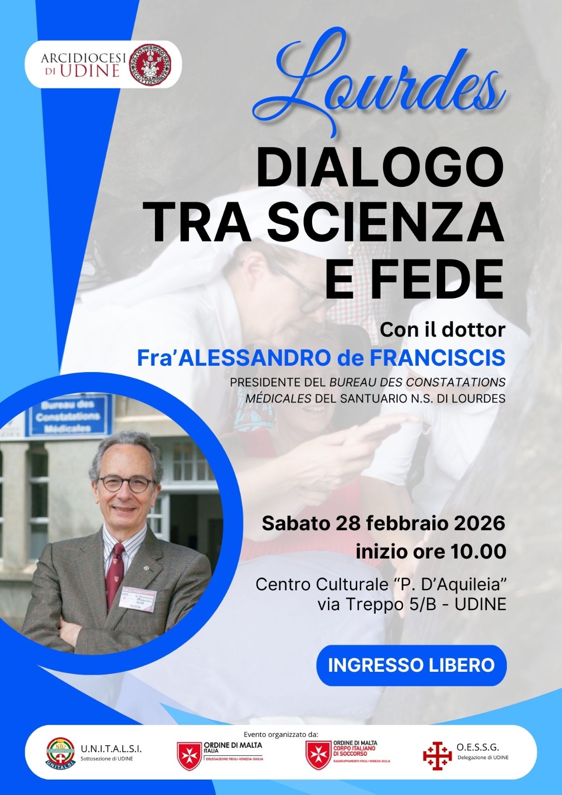 Classe 1955, napoletano, dal 2009 il dott. Alessandro de Franciscis è il 15° medico permanente di Lourdes, presidente del Bureau des constatations médicales e segretario del Cmil, Comitato medico internazionale di Lourdes. È il primo medico non francese alla guida del Bureau e in aprile passerà il testimone alla pordenonese Giada Monami, 49 anni, che fino a pochi mesi fa alla lavorava all’Ospedale civile di Venezia.