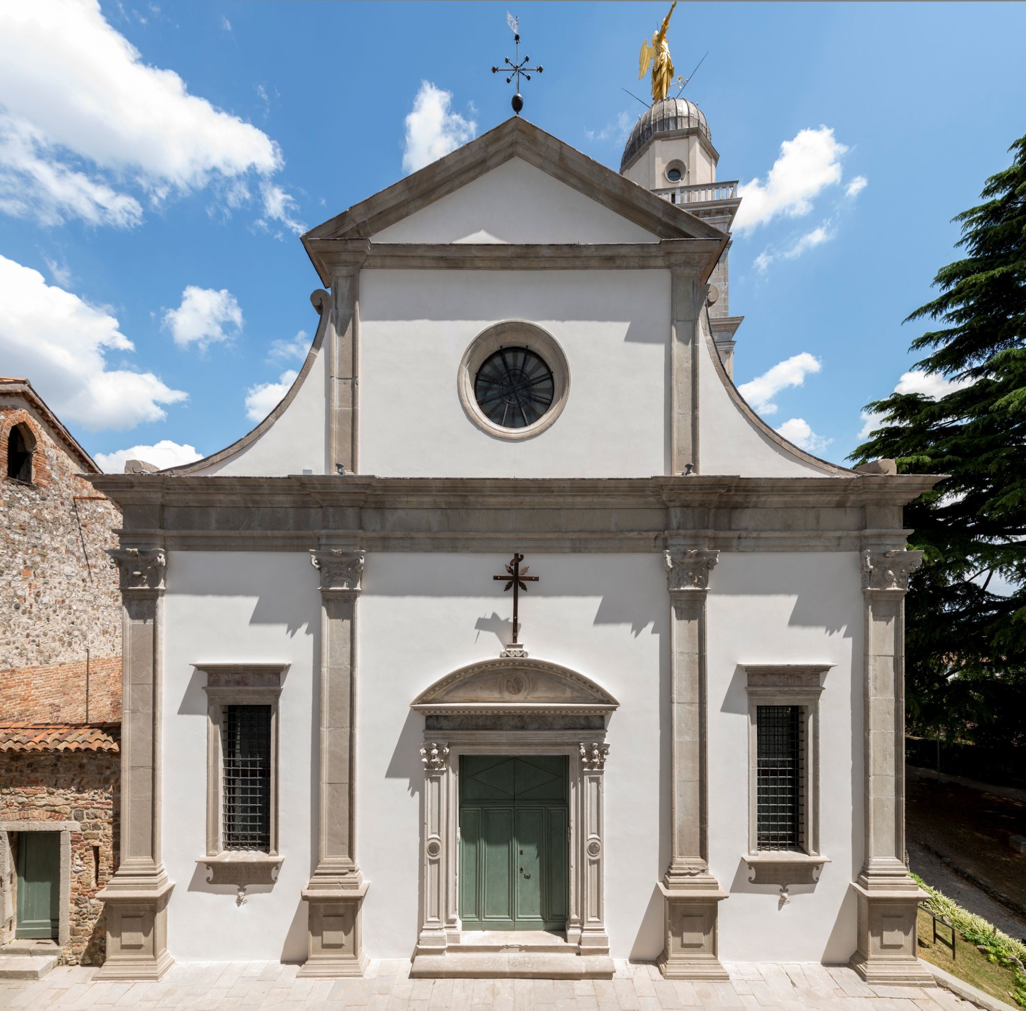Dopo il rovinoso terremoto del 26 marzo del 1511, la facciata fu rifatta da Gaspare Negro all’inizio del Cinquecento, mentre il campanile, iniziato dallo stesso Negro forse al posto di una delle torri della cinta muraria, fu concluso da Giovanni da Udine nel 1539.