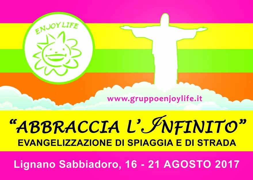 «Abbraccia l’infinito» è la prima edizione della missione che si terà a Lignano Sabbiadoro dal 16 al 21 agosto: un’ottantina di giovani, durante il giorno e la notte, percorreranno le strade e le spiagge della nostra località balneare per annunciare la Parola di Gesù. Ricco il programma delle iniziative che culminerà domenica 20 agosto alle 19, nel duomo di Lignano, con la Santa Messa presieduta dall’Arcivescovo.