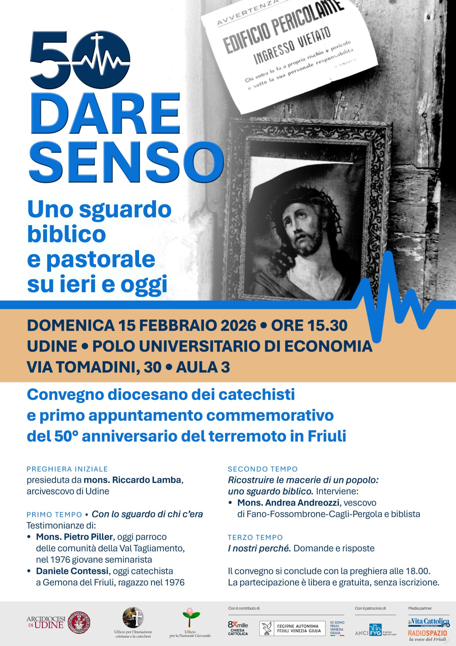 Domenica 15 febbraio il primo dei convegni con cui la Chiesa udinese ricorda il 50° anniversario del terremoto del 1976 coincide con l'annuale appuntamento per i catechisti. Un'occasione per leggere la presenza di Dio nei drammi della storia e del presente. Due testimonianze e le parole del vescovo biblista mons. Andrea Andreozzi.