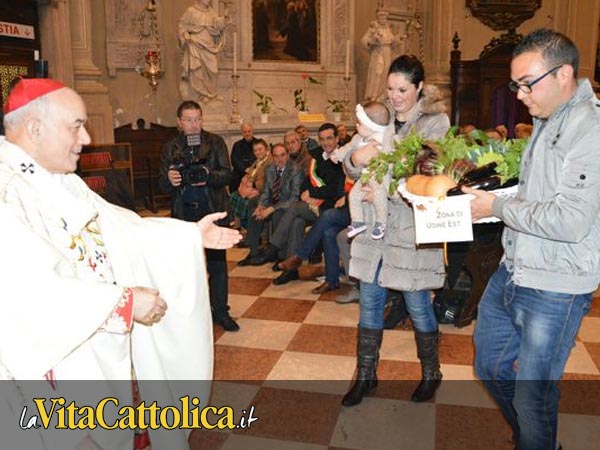 Un appello, questo, che vale per tutti, ma assume speciale valore per gli agricoltori professionisti, chiamati a lavorare ogni giorno nel rispetto della Terra, dell’ambiente e della genuinità dei prodotti. A loro – presenti in gran numero alla S. Messa del Ringraziamento – l’Arcivescovo ha lanciato un appello speciale. Richiamando la prima lettura, nella quale il profeta Ezechiele in una visione vede un fiume sgorgare dalle fondamenta del Tempio di Gerusalemme, la cui acqua guarisce e purifica la Terra, fa germogliare e abbondare di frutti gli alberi e riempie di pesci i fiumi, ha spiegato che quel fiume della visione rappresenta il costante flusso di amore e di carità che viene da Dio, il solo che può vivificare la terra e «del quale ho parlato nella mia recente lettera pastorale che ha indetto l’Anno della Carità nella Chiesa Udinese». Per questo mons. Mazzocato ha ricordato che «ogni rispetto della Terra e dell’ambiente andrà avanti solo se c’è all’origine l’amore di Dio. La Coldiretti faccia tutte le battaglie che sono necessarie, tutto ciò che ci suggerisce l’intelligenza, l’impegno e la ricerca per migliorare la produzione, ma non dimentichi mai quell’acqua viva, quel flusso di amore e di carità che viene dal Signore. La Coldiretti tenga sempre in vita la sua identità e la sua formazione spirituale, Altrimenti si diventa cinici e l’indifferenza finisce per pervadere tutti».