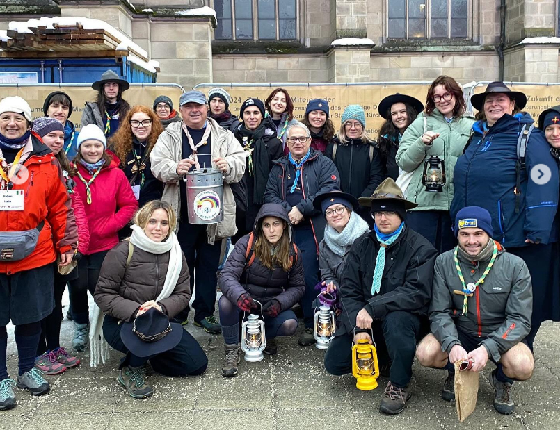 Delegazione del gruppo scout d’Europa Udine 2 alla consegna della Luce a Linz. 9 dicembre 2023. Foto tratta dal profilo Instagram @fseudine2