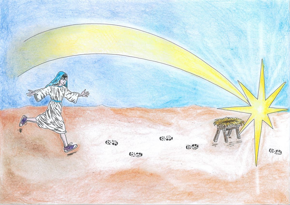 Novità di quest’anno è il cartellone, stampato e arricchito da “stickers” adesivi, messo a disposizione dall’Arcidiocesi (previa richiesta a giovani@pgudine.it), con la figura di Maria che corre verso la culla, sormontata da una grande stella cometa.