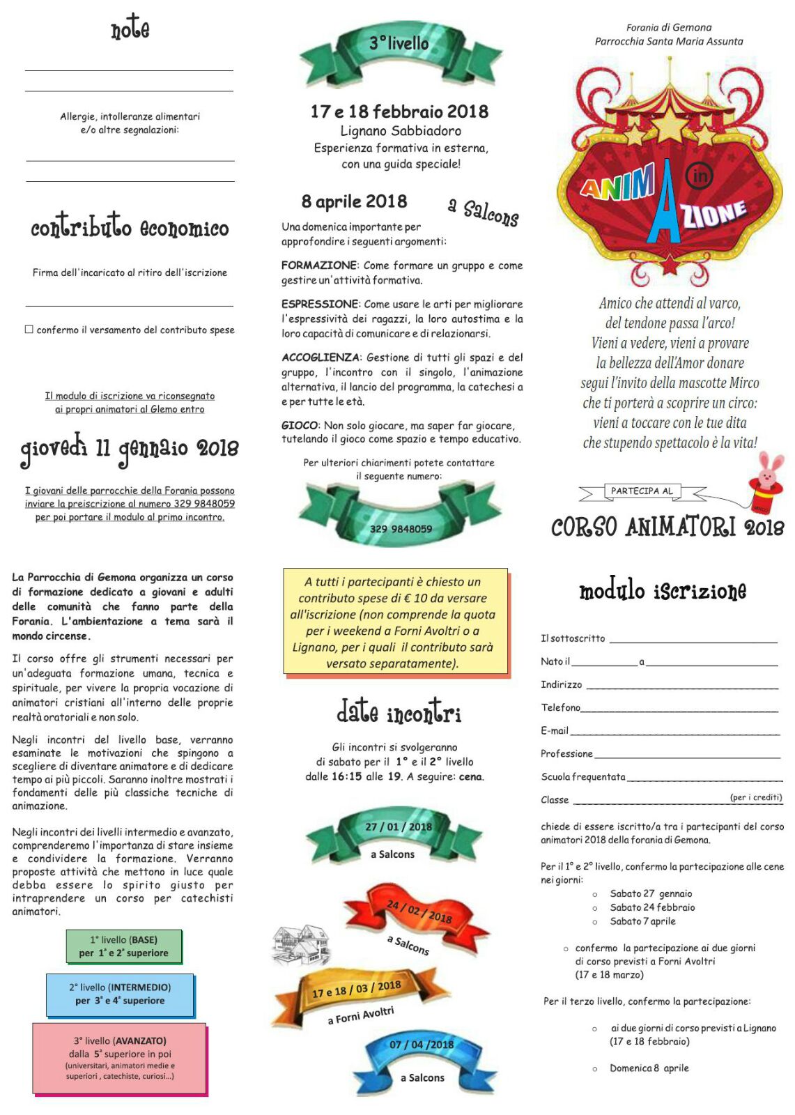 «Anima in Azione»: il simpatico titolo del corso animatori della Parrocchia di Gemona accompagnerà tutti gli adolescenti e giovani che vorranno cimentarsi in questa nuova avventura formativa, progettata dall’oratorio parrocchiale gemonese e aperto a tutta la Forania di Gemona. Il corso vuole offrire gli strumenti necessari per un’adeguata formazione umana, tecnica e spirituale, per vivere la propria vocazione di animatori cristiani all’interno delle proprie realtà di oratorio e non solo.