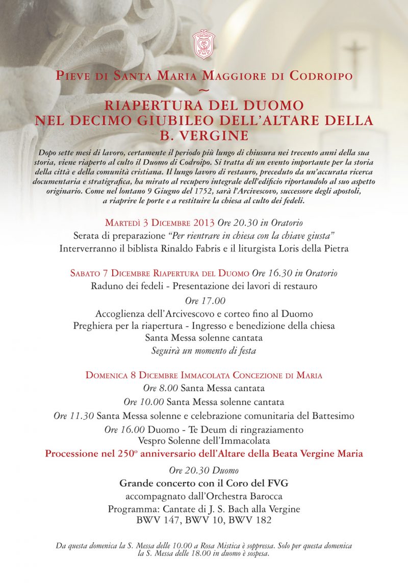 Dopo sette mesi di lavoro, certamente il periodo più lungo di chiusura dei trecento anni della sua storia, viene riaperto al culto il Duomo di Codroipo.